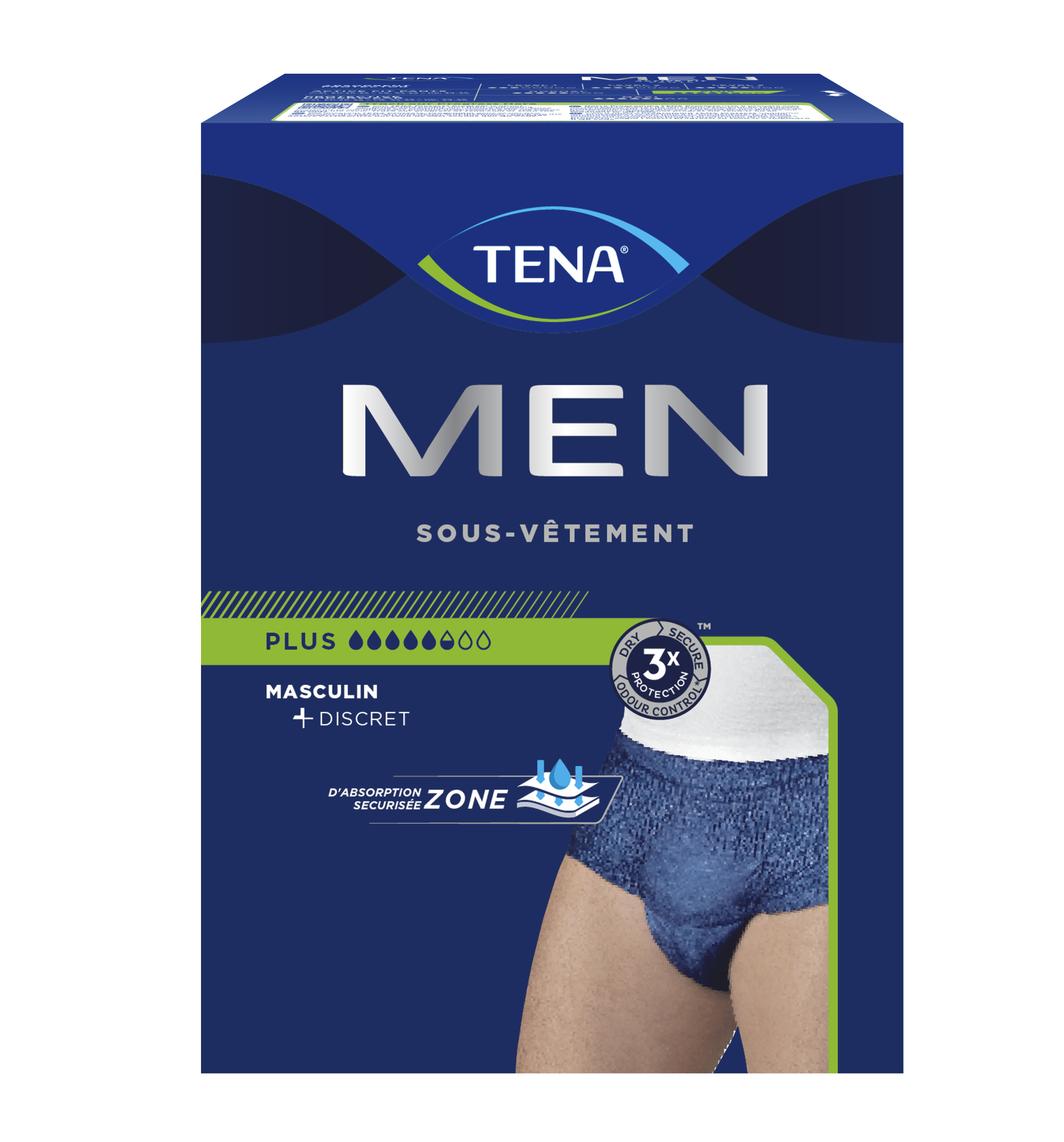 Les sous-vêtements absorbants TENA ont une coupe et un style adaptés à l’anatomie masculine pour une protection fiable tout en étant discrète et confortable. Zone d’absorption sécurisée qui capture instantanément les fuites et les odeurs, placée devant, là où les hommes en ont le plus besoin. Conçus pour ressembler à des sous-vêtements classiques, nos sous-vêtements absorbants pour hommes sont disponibles en différents niveaux d’absorption, styles, tailles et couleurs, vous aidant à trouver le produit le plus adapté à vos besoins. Quel que soit le sous-vêtement absorbant que vous choisissez, vous profitez d’une protection discrète, confortable et sûre contre les fuites urinaires. Gardez le contrôle et restez aussi actif que vous le souhaitez avec les sous-vêtements absorbants TENA spécialement conçus pour les hommes.
