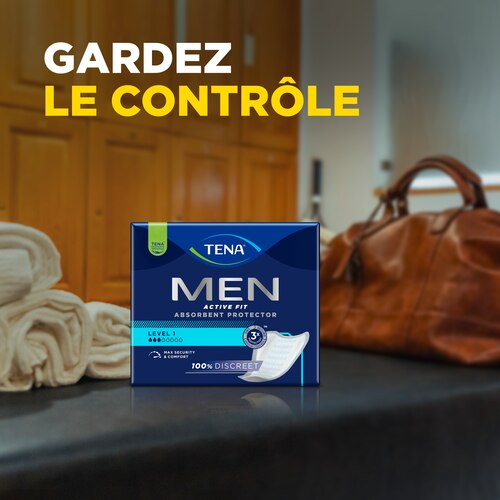 Les protections absorbantes TENA Men Active Fit niveau 1 absorbent les petites fuites urinaires et protègent contre les odeurs et l’humidité. 100 % discrètes, ces protections masculines mesurent 3,5 mm d’épaisseur seulement, offrant une sécurité et un confort maximum. Ces serviettes masculines épousent parfaitement les formes de votre corps. Utilisez la bande adhésive pour coller la protection au sous-vêtement, et oubliez que vous la portez. Elles sont emballées individuellement pour plus de commodité et de discrétion. Ne laissez pas les fuites urinaires impacter votre style de vie. Grâce à ces protections, vous vous sentirez au frais, confiant, que ce soit au bureau, à la salle de sport ou lors de vos sorties.