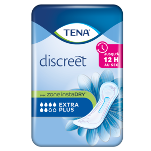 La protection absorbante TENA Discreet Extra Plus offre une sécurité maximale pour les fuites modérées à fortes inattendues. La zone instaDRY™ absorbe instantanément et bloque le liquide au cœur de la protection, assurant jusqu’à 12 heures de maintien au sec. Le design anatomique et les bords doux assurent un confort optimal pour les activités du quotidien. Avec une Triple Protection contre les fuites, les odeurs et l’humidité. TENA Discreet Extra Plus est le choix ultime au quotidien pour les femmes ayant des fuites urinaires modérées à fortes, qui peuvent être particulièrement imprévisibles. Sentez-vous protégée en toute circonstance avec une absorption instantanée et un ajustement confortable.