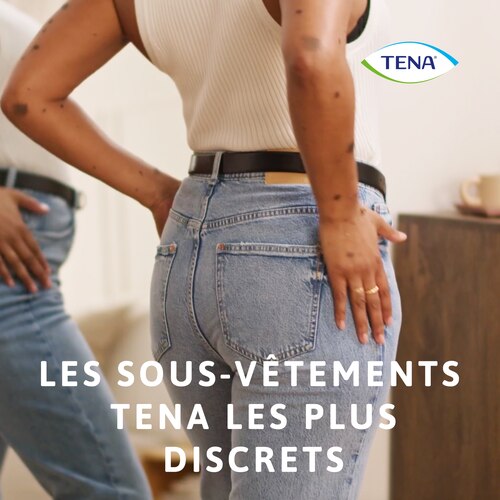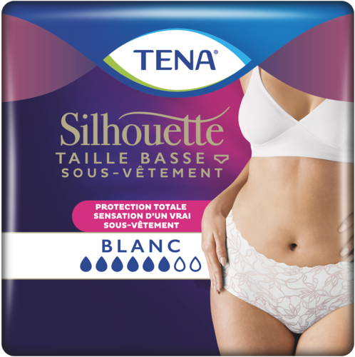 Contrairement aux sous-vêtements absorbants ordinaires pour femmes, TENA Silhouette présente un ajustement près du corps à la coupe nette et élégante et une matière micro-aérée extensible, pour vous déplacer librement toute la journée. Discret, élégant et offrant une protection sûre et confortable, le tissu est sans coutures jusqu’à l’entrejambe, pour un look et aspect similaire à un sous-vêtement classique. C’est notre sous-vêtement jetable le plus discret qui soit, pour optimiser votre silhouette et votre bien-être.